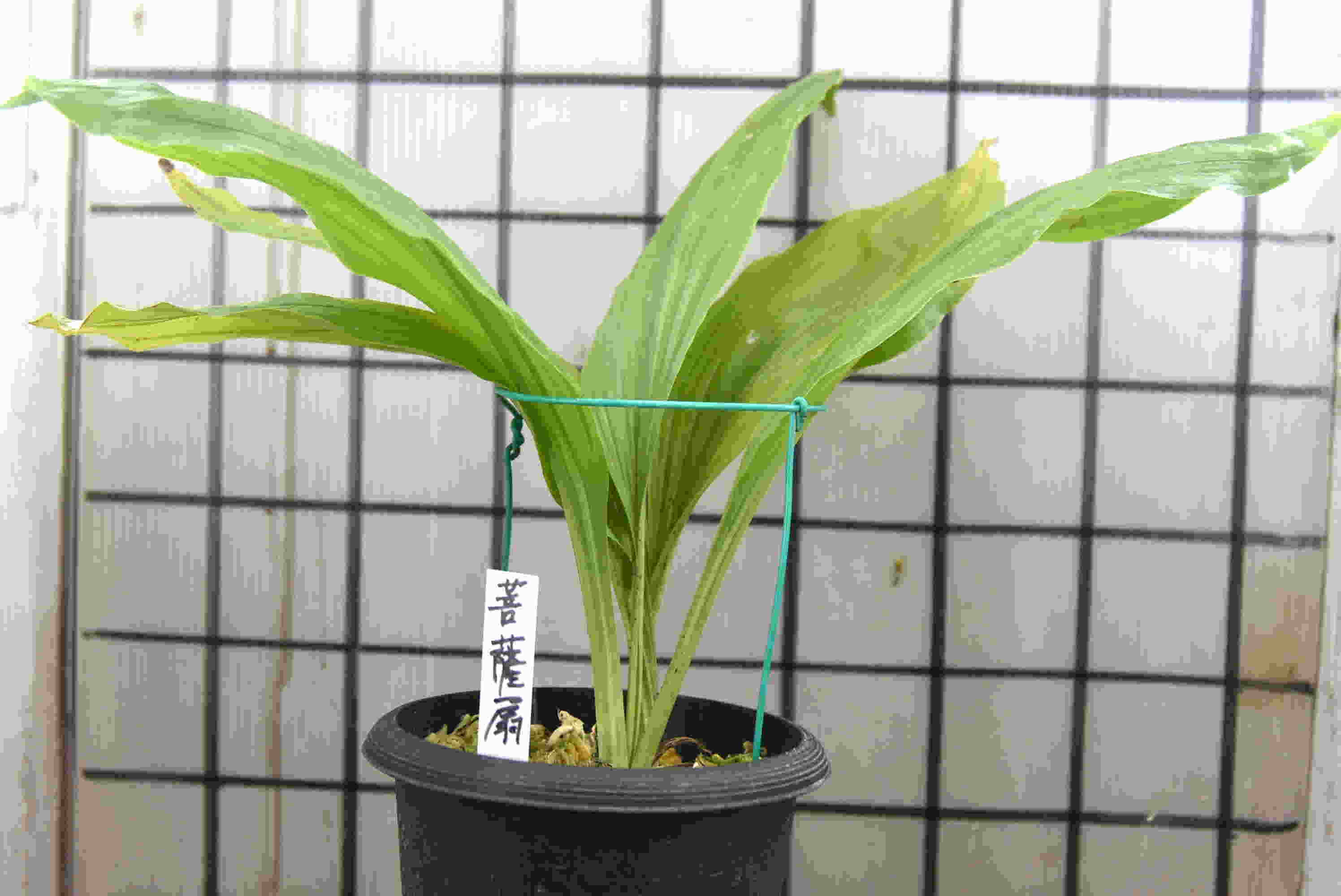 サツマ系交配種 とにかく花が大きく5㎝以上あります。花弁は分厚く幅広で、迫力があります。第1回備前えびね蘭香展銀賞花 巨大輪 |